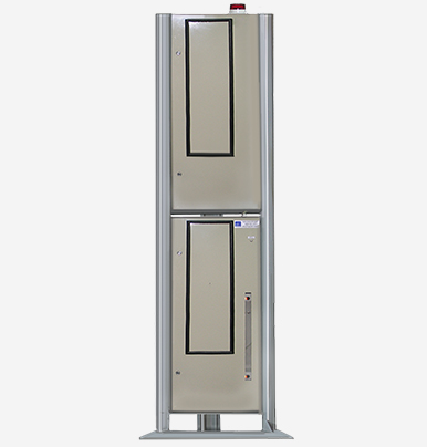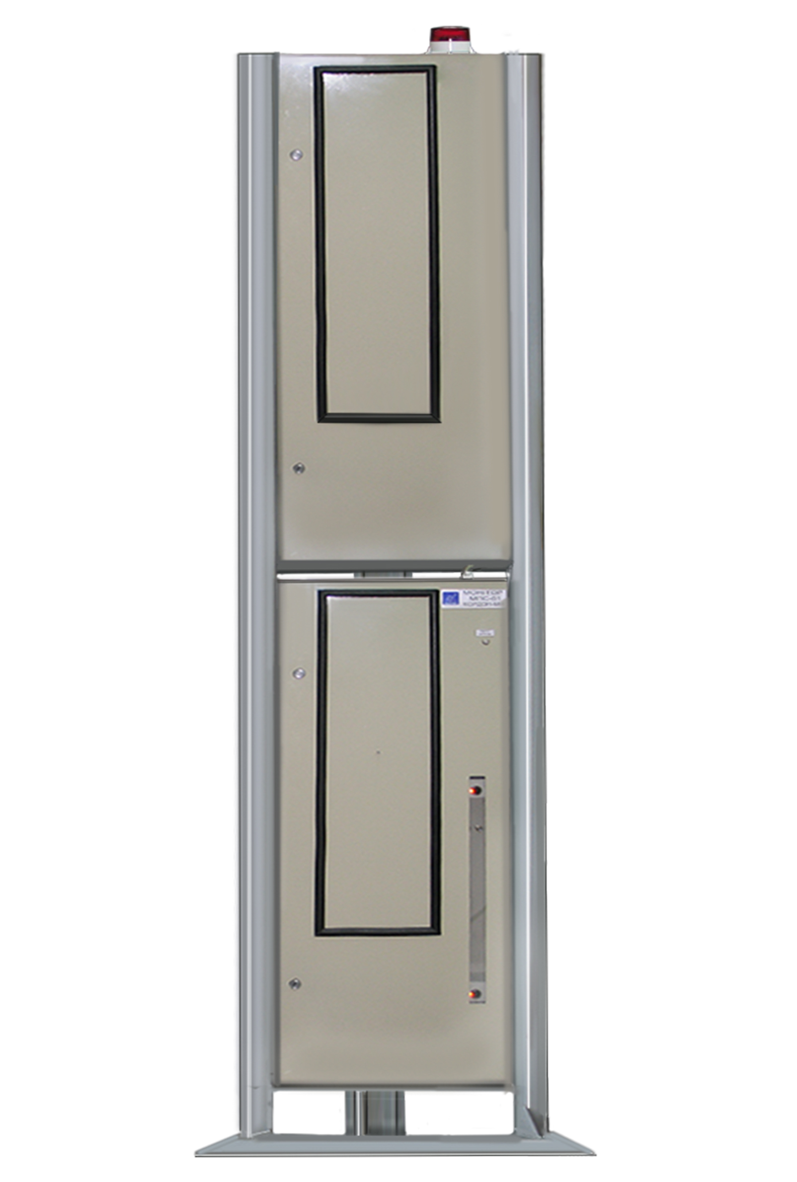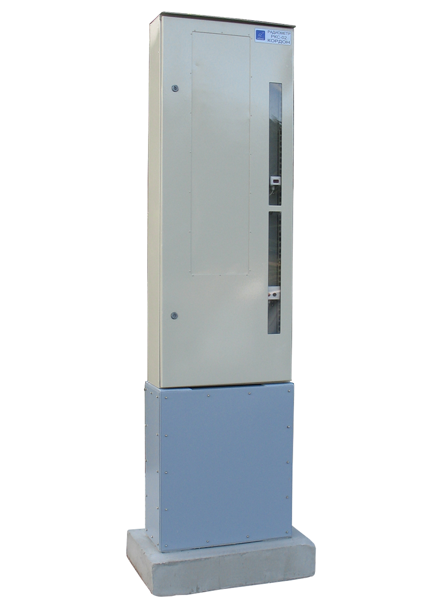 • датчик наявності об'єкта КБХ-01ПМ з інфрачервоним випромінювачем ИКИ-03М для вироблення сигналу про наявність об'єкта в зоні контролю. Принцип дії датчика заснований на перетині об'єктом інфрачервоного променя; • сирена БИЦ-09 для дублювання звукового і світлового сигналу тривоги в місці установки блоків детектування; • блок виносної сигналізації БИЦ-12 для контролю працездатності сирени БИЦ-09 і вимкнення сигналу при спрацьовуванні сигналу тривоги. Контроль працездатності забезпечується при натисканні кнопки на БИЦ-12. Відключення звукового сигналу відбувається за допомогою тумблера на БИЦ-12; • дві стійки (базові та додаткові) для кріплення блоків детектування. Стійки встановлюються з двох сторін шляху проходження об'єкта контролю. Усередині кожної стійки встановлений один або два, залежно від умов поставки, блока детектування. У кожній зі стійок з блоками детектування, встановлені свинцеві екрани, що зменшують вплив природного радіаційного фону з усіх боків, крім напрямку до об'єкту контролю.Радіометр для контролю персоналу виконаний у вигляді стаціонарних радіометричних воріт, що складаються з двох бічних стійок (стійка базова і стійка додаткова), нижнього і верхнього блоку. У кожній бічній стійці встановлено блок детектування БДПС-06 з довжиною сцинтилятора 1000 мм.
