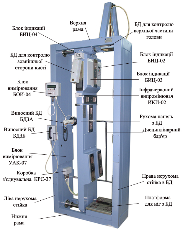 Стійка з 15 стаціонарними блоками детектування БДЗБ і блоком вимірювання УАК-07 (що знаходиться всередині корпусу установки). На відміну від базової моделі, відсутні стаціонарні блоки детектування для контролю верхньої частини голови і тильної сторони долонь. Виконання 21 оснащено двома дисциплінарними бар'єрами, а виконання 41 одним.